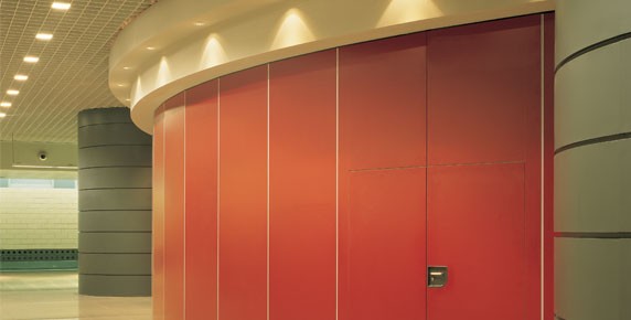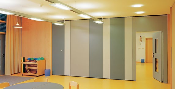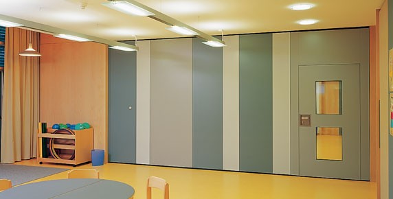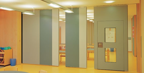 Pereti mobili glisanti cu grad ridicat de fonoizolare (36-49 dB), alcatuiti din panouri cu structura din otel placate cu PAL (melaminat, tapetat, tapisat etc.), suspendate prin intermediul unor carucioare cu rulmenti (1 sau 2 pe panou) de o sina din otel sau aluminiu fixata pe tavan, FARA SINA PE PARDOSEALA. Panourile sunt dotate cu garnituri din cauciuc telescopice la partea inferioara si superioara care, actionate de un sistem de parghii, blocheaza pe pozitie panoul si asigura racordul etans la pardoseala si la tavan. Pe verticala panourile se imbina cu profile din aluminiu ascunse, dotate cu garnituri duble din cauciuc si benzi magnetice pentru asigurarea unui contact etans. Panourile Profil 100, FARA PROFILE LATERALE LA VEDERE creeaza o SUPRAFATA CONTINUA. Ultimul panou are in plus un profil telescopic orizontal, care asigura racordul etans la capatul peretelui. Peretele poate avea usi simple ori duble, sau panouri cu sticla.