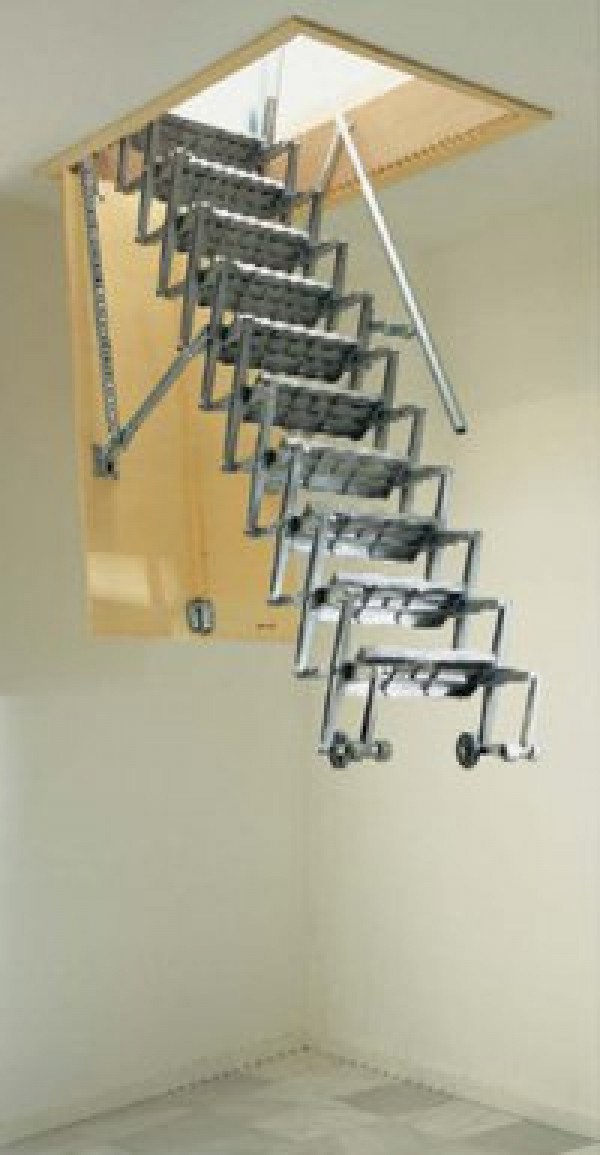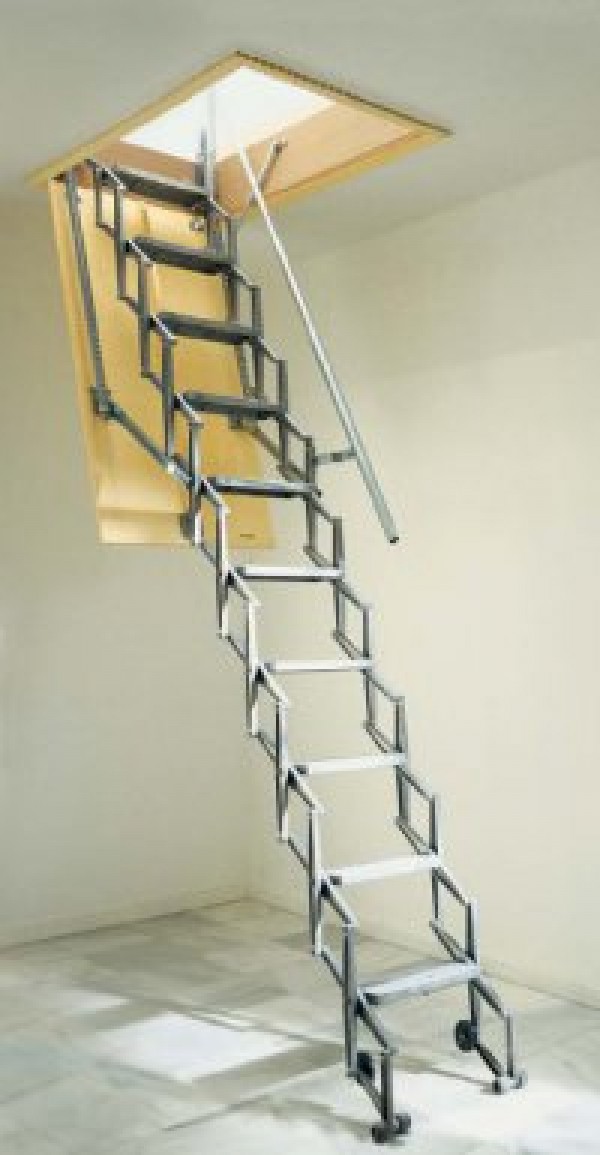 Scara retractabila Allumin Estfeller este compusa din trepte si elemente de conexiune din dur - aluminiu deschizandu-se ca un pantograf. Deschiderea si inchiderea capacului se face cu ajutorul bastonului de manevrare iar extinderea si rabatarea scarii se face manual, dar foarte facil datorita arcurilor laterale ce preiau greutatea scarii si a capacului de inchidere.